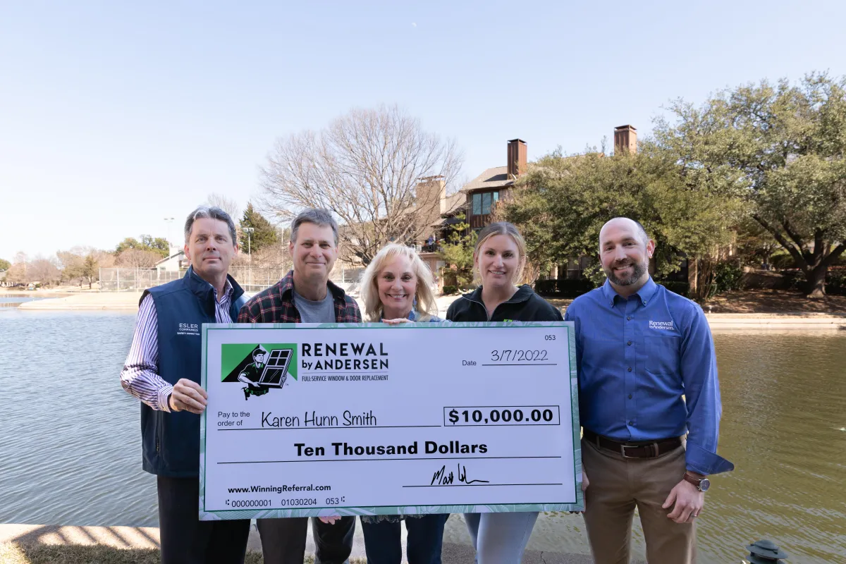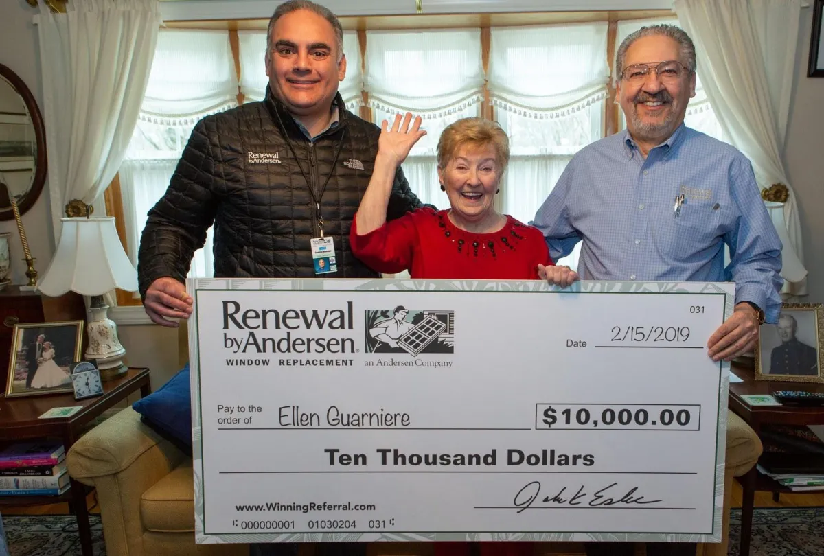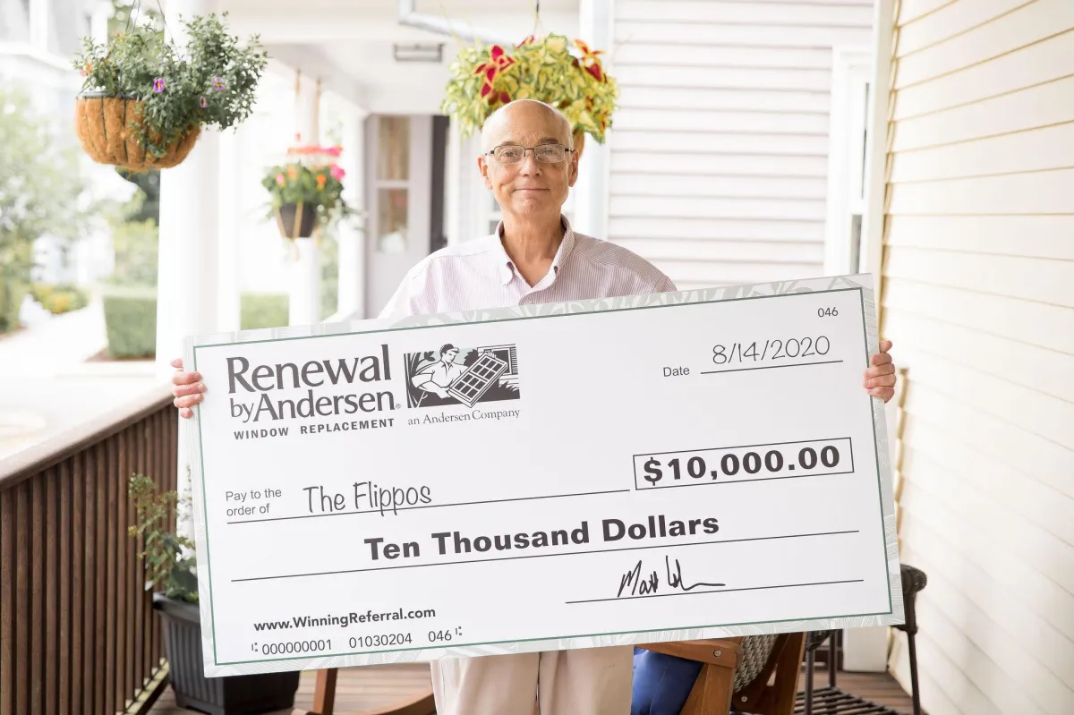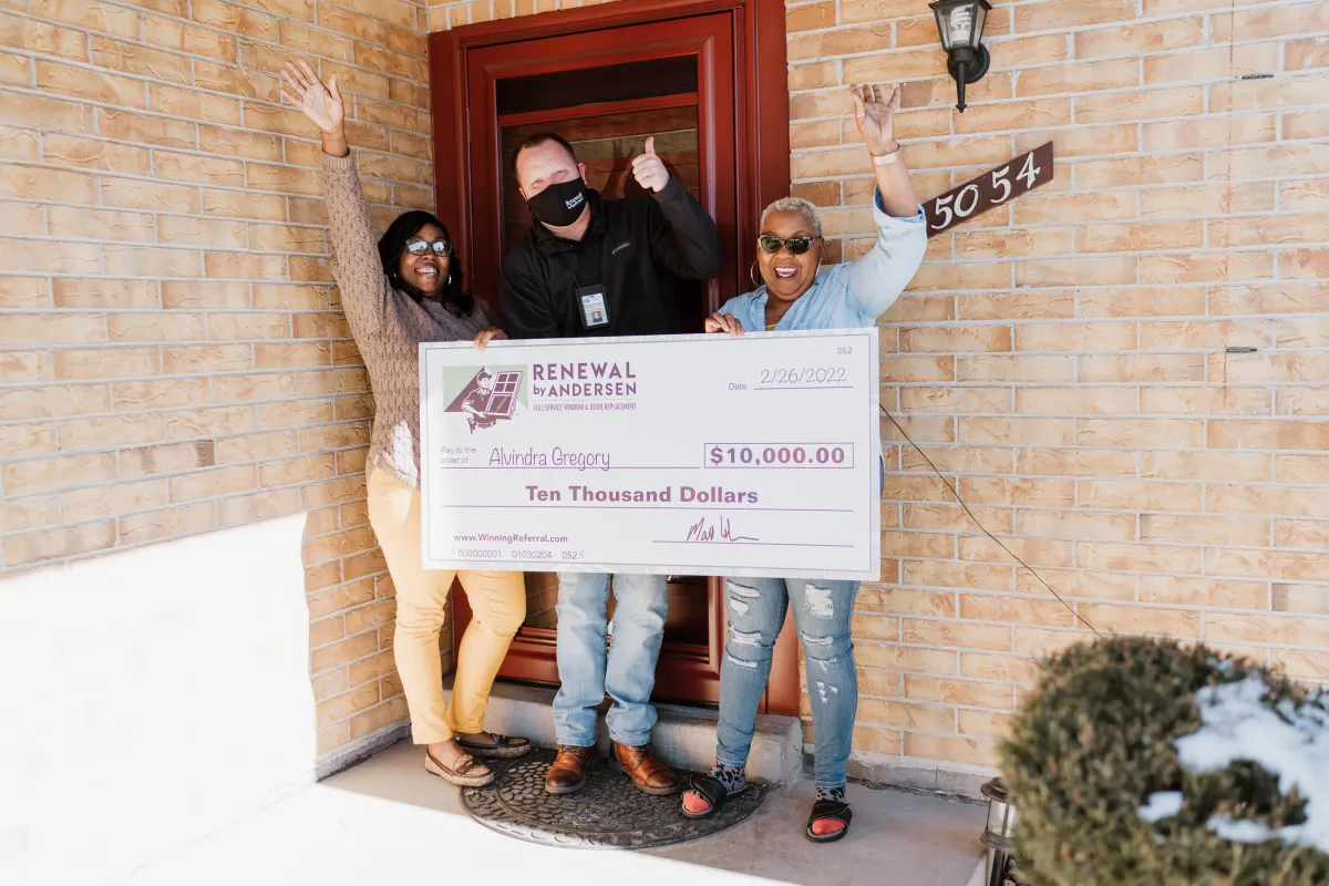 For every referral of yours who becomes a customer of Renewal by Andersen of Central Texas, we will put your name into a drawing. For every 100 qualified referrals received, we will draw one person's name at random who has referred us and that person will win $10,000! In short, for every referral who buys from us, you have a 1% chance at winning the $10,000 prize pool.