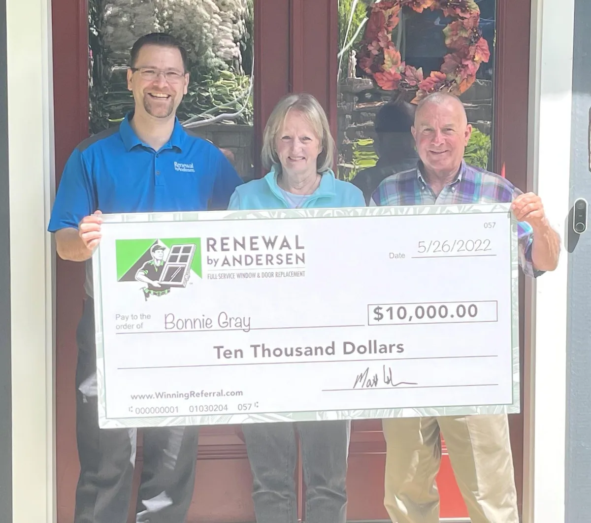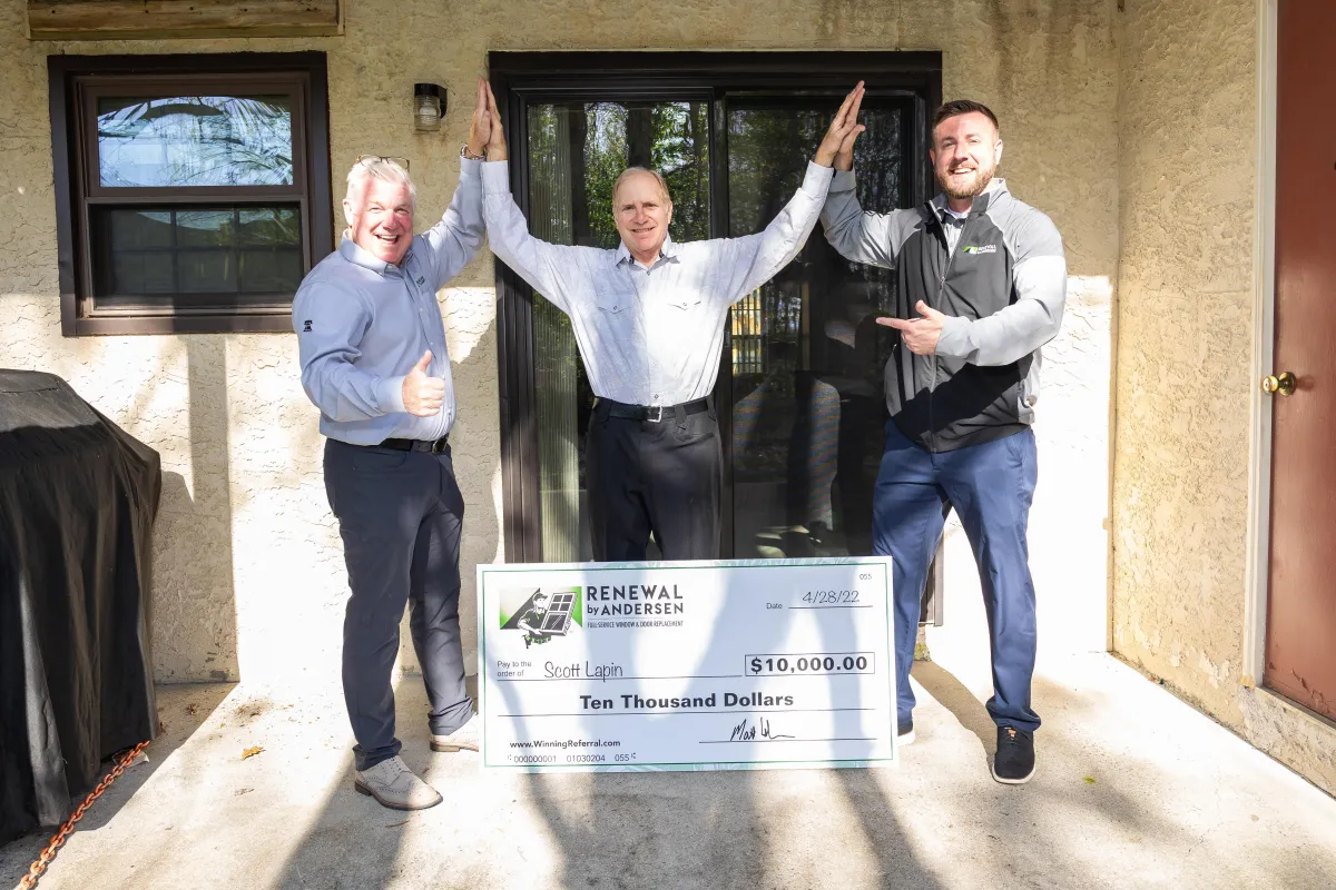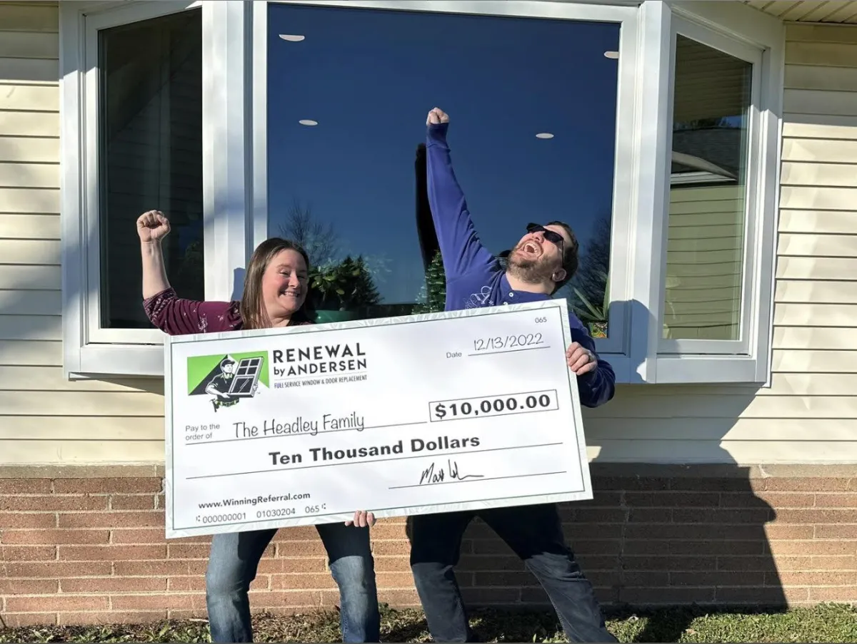 For every referral of yours who becomes a customer of Renewal by Andersen of Central Texas, we will put your name into a drawing. For every 100 qualified referrals received, we will draw one person's name at random who has referred us and that person will win $10,000! In short, for every referral who buys from us, you have a 1% chance at winning the $10,000 prize pool.